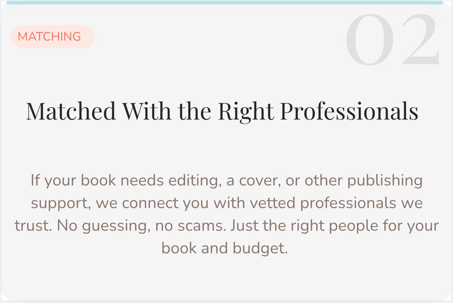 We only send you authors who have been through our audit process. They will be informed, serious, and ready to invest in their book the right way.